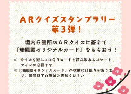 即將舉行的活動 お知らせ 令和8年 通常観覧時間への変更につきまして 令和7年12月1日(月)から令和8年1月31日(土)までは冬季観覧時間に変更しておりましたが、令和8年2月1日(日)から11月30日(月)までは通常の観覧時間に… イベント情報 ARクイズスタンプラリー 第3弾!開催中 境内6箇所のARクイズに参加いただき、スタンプを全て集めた方に「瑞鳳殿オリジナルカード」を進呈いたします。ご来… 重要なお知らせ 令和7年・8年 資料館改修に伴う休館のお知らせ 改修工事のため、令和7年12月1日(月)~令和8年4月28日(火)まで資料館を休館いたします。資料館休館中の観… お知らせ 令和8年 通常観覧時間への変更につきまして 令和7年12月1日(月)から令和8年1月31日(土)までは冬季観覧時間に変更しておりましたが、令和8年2月1日(日)から11月30日(月)までは通常の観覧時間に… イベント情報 ARクイズスタンプラリー 第3弾!開催中 境内6箇所のARクイズに参加いただき、スタンプを全て集めた方に「瑞鳳殿オリジナルカード」を進呈いたします。ご来… 重要なお知らせ 令和7年・8年 資料館改修に伴う休館のお知らせ 改修工事のため、令和7年12月1日(月)~令和8年4月28日(火)まで資料館を休館いたします。資料館休館中の観…